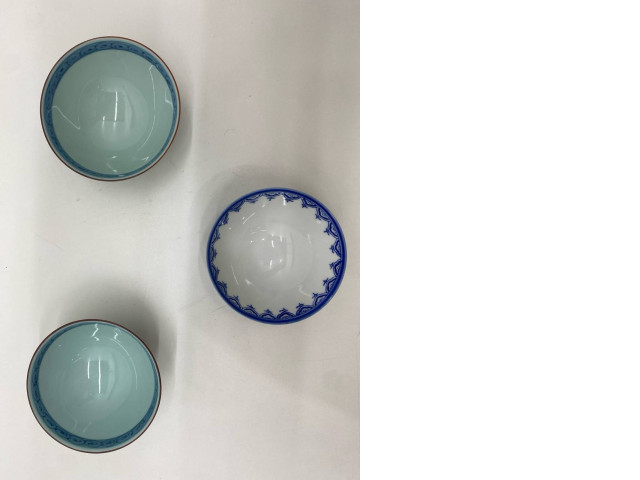 Set of 3 Medium Chinese rice bowl with fish pattern