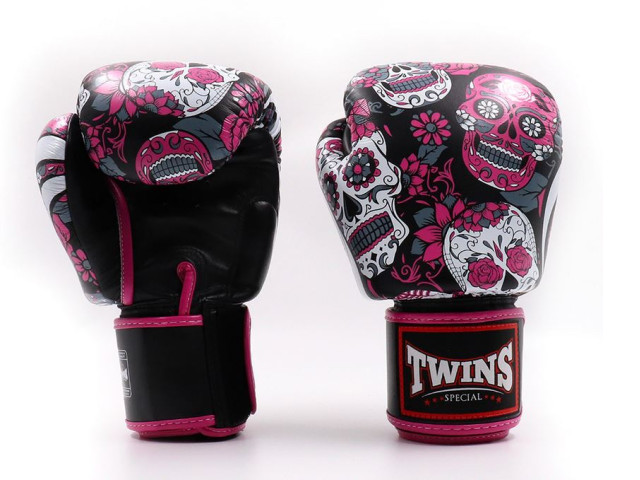 The TWINS GLOVES FBGVL3-53 in Pink/Black are designed not only for performance but also for style. Featuring a striking design with vibrant pink and black colors, these gloves are adorned with intricate sugar skull motifs and floral patterns, giving them a unique and artistic appeal. The high-quality materials ensure durability and comfort, while the padded structure provides excellent protection during training sessions. A secure wrist strap enhances support and stability, making them an ideal choice for both beginners and experienced fighters looking to make a statement in the ring.