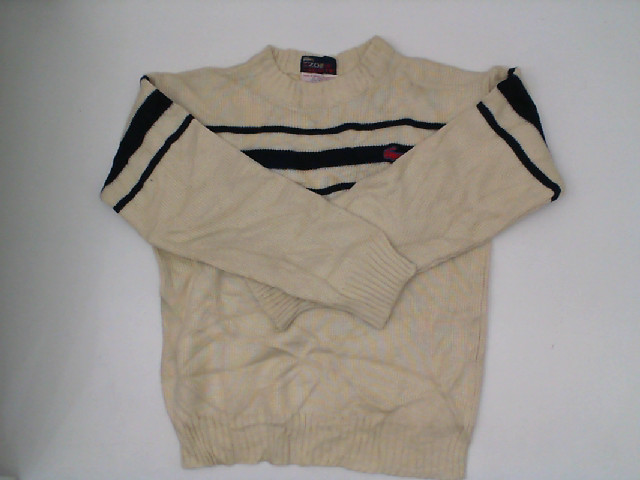 Lacoste Women's cream-colored turtleneck sweater with blue pattern
