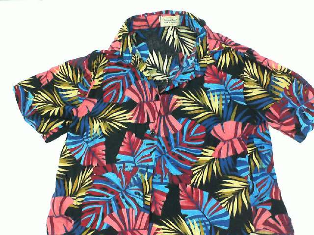 Black shirt with colorful leaf pattern
