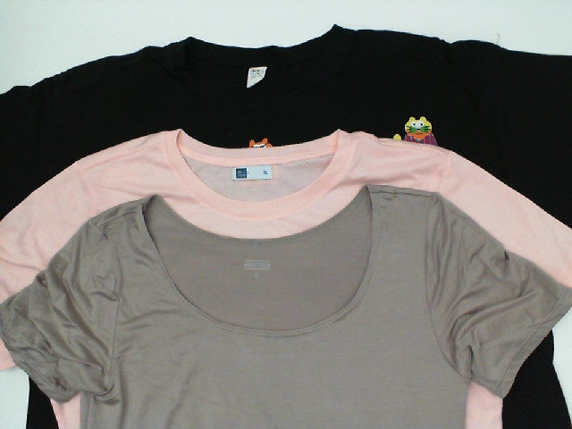 Set of 3 Women's short-sleeved round neck T-shirt in black, cream, and green