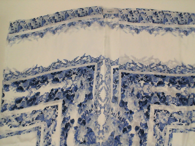 White coat with blue pattern