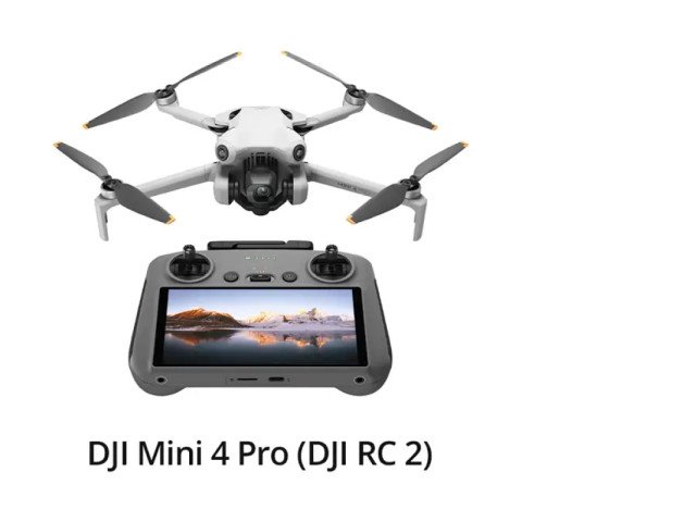 The DJI Mini 4 Pro drone, displayed with its remote controller, is a compact and powerful aerial photography tool. It features a sophisticated design that includes extended propeller arms for increased flight stability and efficiency. The drone appears to have an integrated camera positioned at the front, which likely delivers high-quality images and videos. The accompanying remote controller, prominently featuring a large screen, suggests enhanced live-feed viewing and precise control over the drone's movements. Its sleek and minimalistic design enhances portability, offering appeal to both amateur and professional aerial photographers and videographers who require a lightweight, yet capable device for capturing stunning aerial footage.