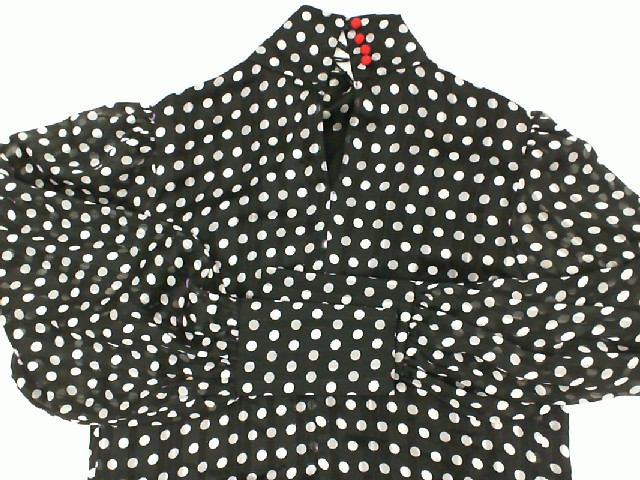 Women's long-sleeved round neck shirt in black with white polka dots