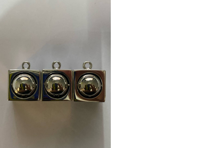 Set of 3 Square silver pendant necklace with a ball in the center.