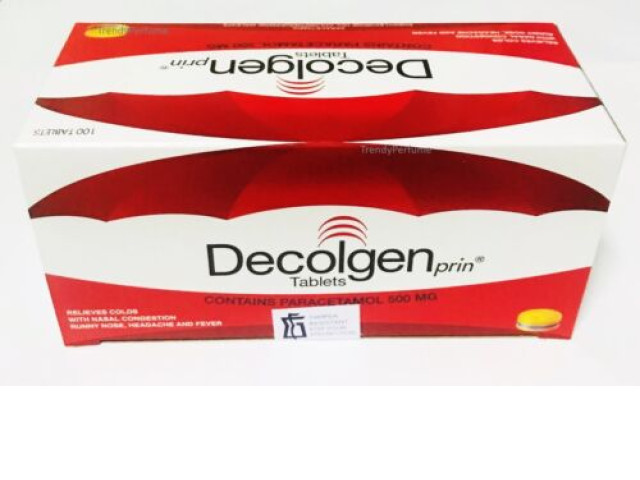 The DECOLGEN Prin set comes with 100 tablets, each containing 500 mg of paracetamol, aimed at provid..
