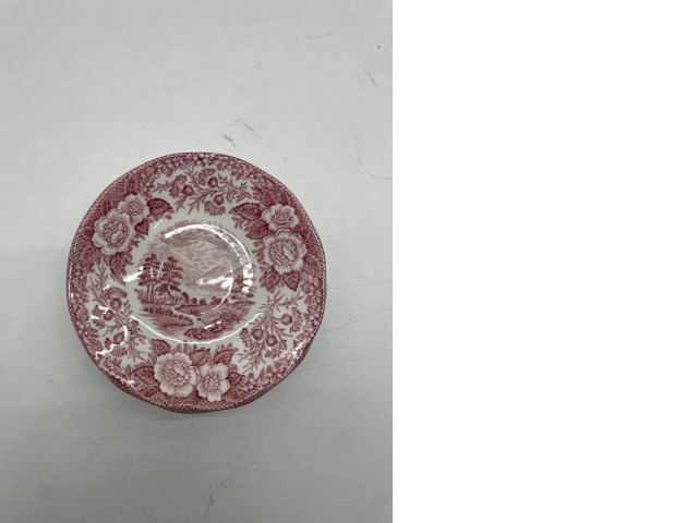 This elegant tea cup and saucer set features a striking red pattern that showcases intricate landsca..
