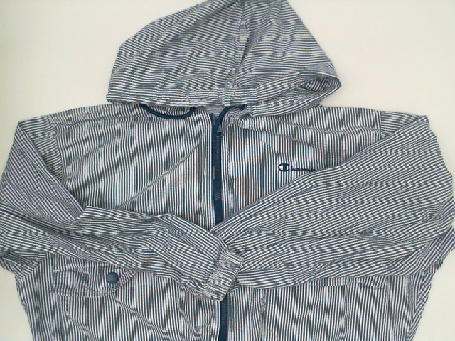 Women's blue and white striped long-sleeved hooded sweatshirt