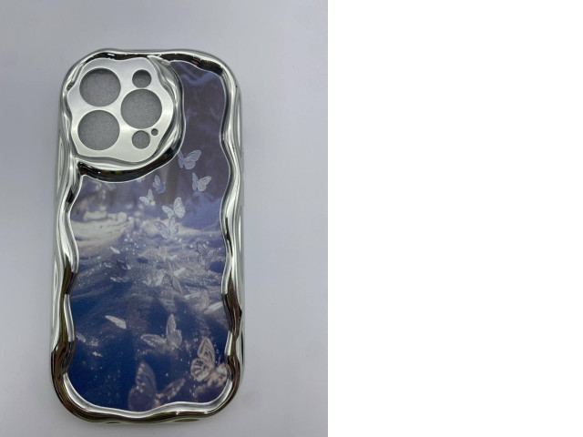 Silver phone case with butterfly pattern