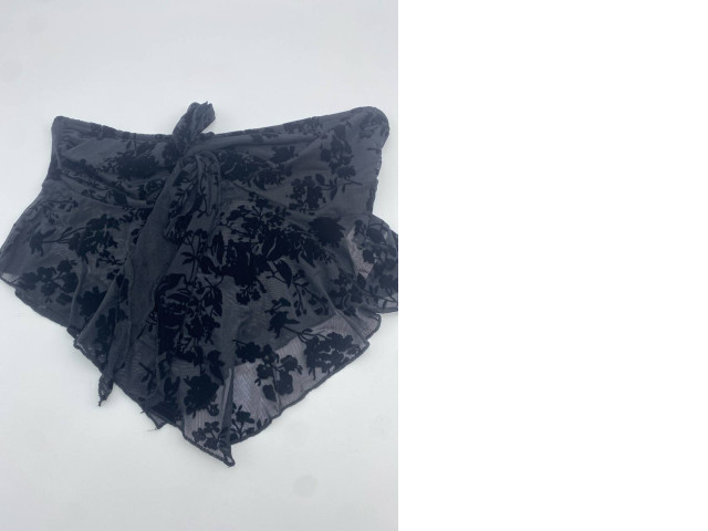 This black halter neck top features a sleek and shiny finish, adding a touch of glamour to any outfi..