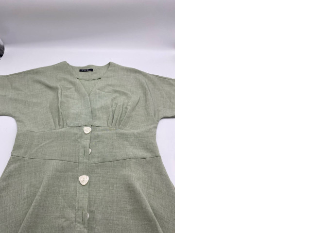 This elegant red V-neck short dress features long, puffed sleeves that add a touch of sophistication..