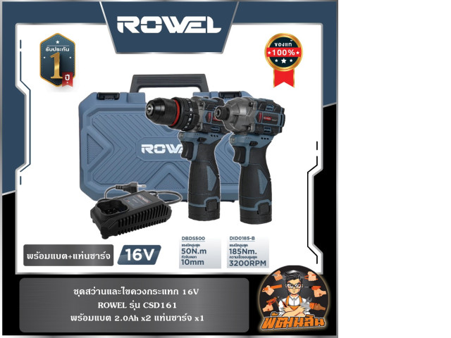 ROWEL 16V drill and impact screwdriver set ROWEL CSD161 with 2.0Ah x 2 batteries