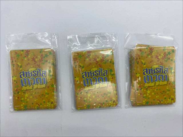 This delightful set of souvenir photocards features a vibrant and playful design, perfect for collectors and enthusiasts alike. Each card is adorned with a shiny golden finish and colorful star patterns, creating an eye-catching aesthetic. Packaged in a clear plastic sleeve, the cards offer both protection and a peek at their bright, engaging graphics. Ideal as a gift or a unique keepsake, this set encapsulates the charm and excitement of special moments.