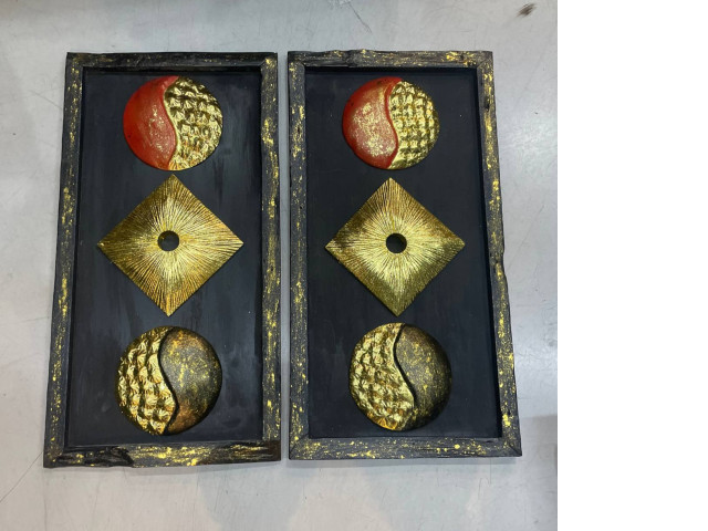 • Set of 2 wooden moon and sun painting