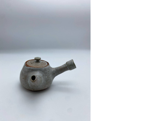 This Japanese teapot features a unique, rounded design with a distinctive spout that adds character and functionality. The light gray ceramic material showcases a subtle texture, enhancing its artisanal appeal. Its minimalist aesthetic is complemented by a small, gently curved lid with a delicate knob, allowing for easy access. This teapot is perfect for brewing a variety of teas, and its elegant form makes it an attractive centerpiece for any kitchen or dining room.