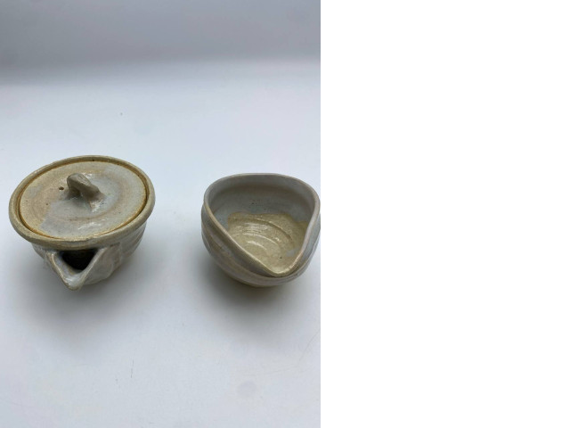 Set of 2 Japanese teapot with green cream teacup
