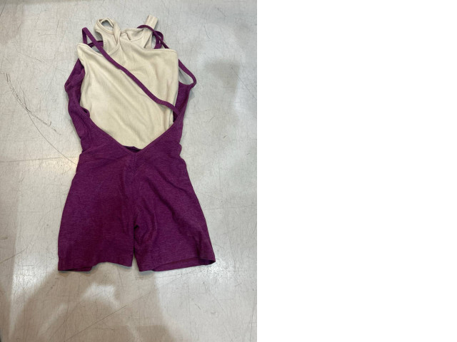 This women's gym suit features a stylish and comfortable design. The top is a light purple sleeveles..