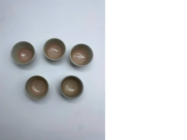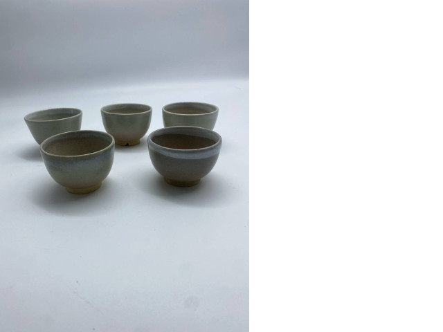 Set of 5 Small cream colored Japanese ceramic tea cup