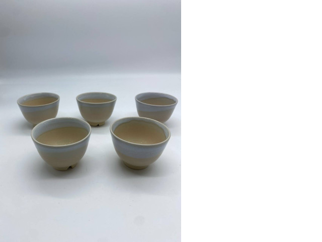 Set of 5 Small cream colored Japanese ceramic tea cup
