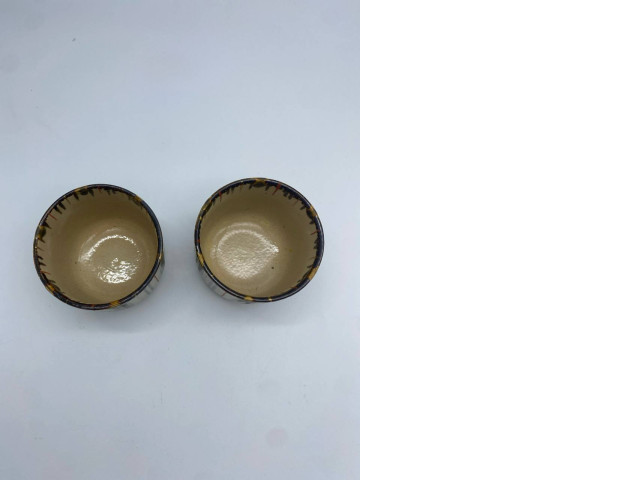 Set of 2 Japanese ceramic teacup, tall and flat