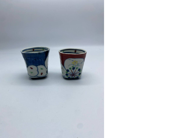 Set of 2 Tall Japanese ceramic teacup with pattern