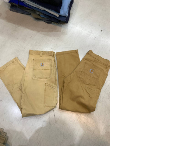 This set includes three pairs of light brown SECONDHAND Carhartt pants, showcasing a rugged and vers..