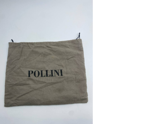 This cloth bag is a practical and stylish accessory for everyday use. Made from durable fabric, it features a neutral beige color that is both versatile and appealing. The bag prominently displays the brand name 'POLLINI' in bold black lettering, adding a touch of sophistication. It includes drawstring closures at the top, providing easy access to your belongings while ensuring they remain secure. Ideal for carrying items like clothing, shoes, or other essentials, this bag combines functionality with a chic aesthetic.