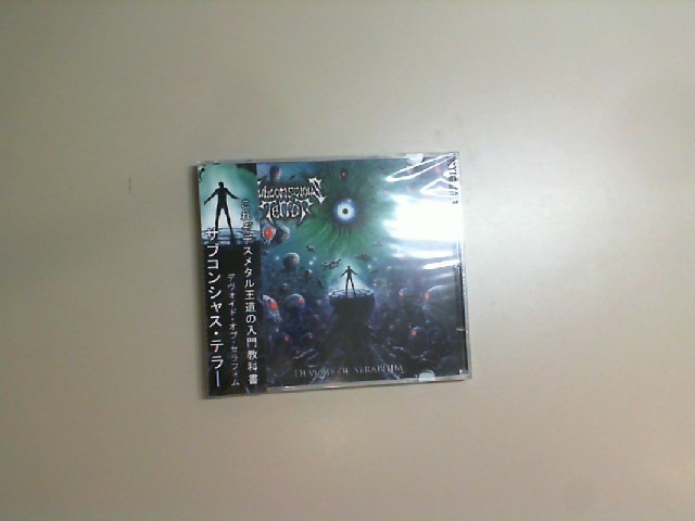 The CD titled 'Devoid of Seraphim' features a striking cover art that captures the attention with its vibrant colors and ethereal imagery. In the foreground, a silhouetted figure stands before a mysterious vortex, surrounded by an array of celestial objects that hint at a cosmic theme. The backdrop includes swirling colors and structures that evoke a sense of depth and intrigue. This art contributes significantly to the album's appeal, suggesting a journey through otherworldly realms and a profound auditory experience.