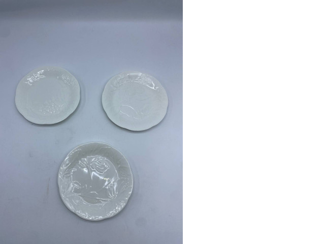 This delightful set of three white-blue plates features an elegant floral design that enhances their..
