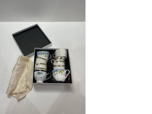 This elegant set of 4 clear cups and a teacup combines beauty and functionality. Each cup features i..