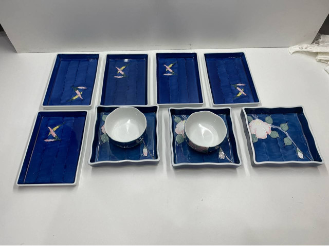 Set of blue dishes