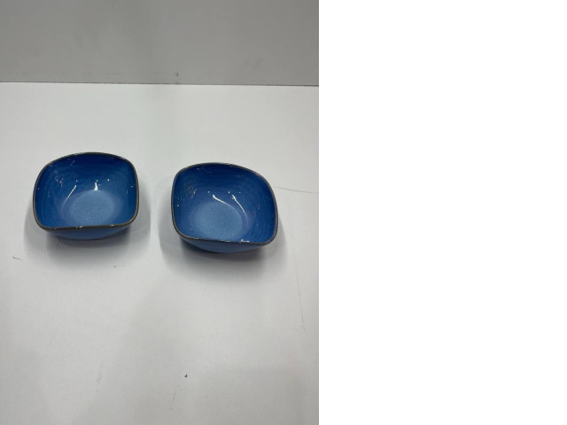 Set of blue soup plates