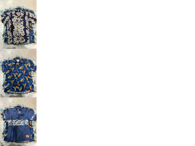This vibrant set features three secondhand Hawaiian short-sleeved shirts, perfect for adding a splas..