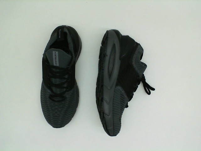 The UNDER ARMOUR INTELLIKNIT SHOES size 7 offer a sleek and modern design, as visible in the provided image. The shoes are predominantly black with a textured knit upper that contributes to a contemporary look while also providing breathability and a comfortable fit. The thick and patterned outsoles suggest enhanced traction and durability, making these shoes potentially suitable for a variety of athletic endeavors. The subtle branding on the shoe's tongue adds to its appeal without overwhelming the overall minimalist aesthetic.