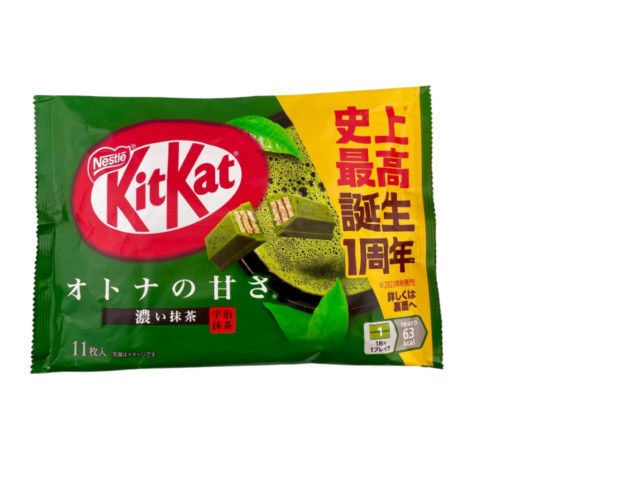 KitKat mini rich Matcha offers a delightful blend of rich matcha flavor combined with the signature crispy wafer layers and smooth chocolate coating. The vibrant green color of the matcha gives it an appealing look, while the package showcases its unique essence with a sleek design. Ideal for a quick treat, each piece is a perfect balance of sweet and slightly bitter matcha, making it a sophisticated snack for any chocolate lover.