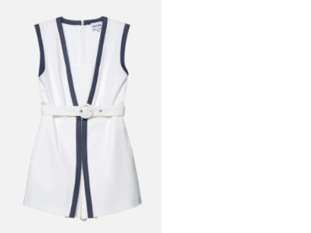 Romper set with contrasting color trim