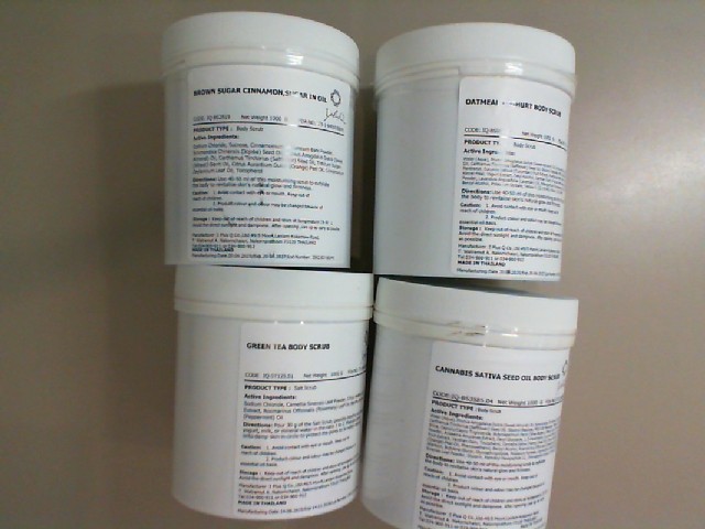 Set of 4 scrub for body. I PLUS Q. Oatmeal yoghurt. Brown sugar cinnamon. Green tea. Cannabis sativa seed oil