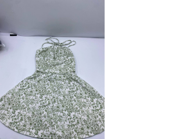 Light green short skirt tank top dress with leaf pattern