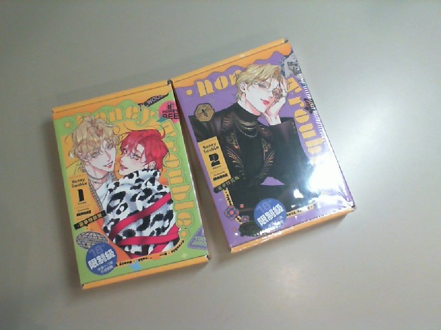Gift box set 2 volumes of Honey Trouble book in Korean, anime, each box contains insert cards, bookmarks and an acrylic figure