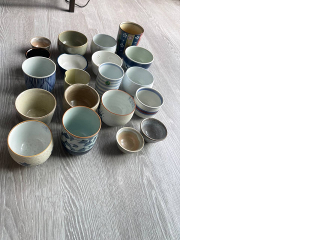 This exquisite set of 20 Japanese tea glasses showcases a variety of unique designs, each reflecting..