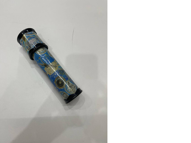The Blue Kaleidoscope is a visually captivating device, beautifully designed with a vibrant blue exterior adorned with intricate patterns. Its decorative elements include celestial motifs and various symmetrical designs, creating a charming visual experience when viewed through. Each turn reveals a unique arrangement of shapes and colors, making it perfect for both children and adults alike. This educational toy encourages creativity and curiosity about light and optics, bringing joy and wonder to anyone who gazes through it.