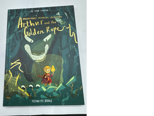 Arthur and the Golden Rope is an enchanting tale that invites readers into a mystical adventure. The cover features a young boy named Arthur, who carries a flame in one hand, symbolizing courage and curiosity. The vivid illustration showcases a looming green creature in the background, which adds an element of suspense and intrigue. The delightful art style is vibrant and engaging, perfectly capturing the whimsical nature of the story. This enchanting book encourages children to explore bravery and friendships, making it a perfect addition to any child's library.