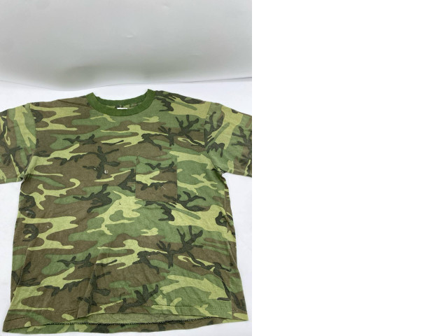 This vintage military pattern round neck t-shirt features a unique camo print in shades of green and..
