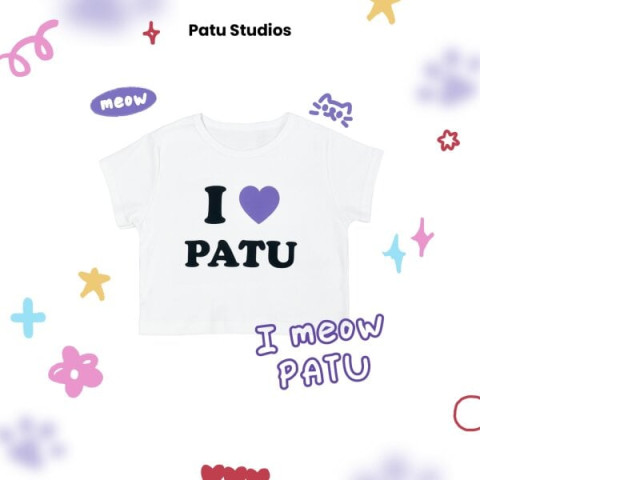 The PATU Blue round neck t-shirt features a vibrant purple color that stands out. The playful slogan..