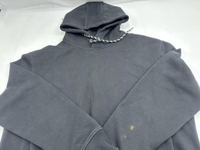 This black hooded sweatshirt is designed for both comfort and style. It features a cozy, soft fabric..