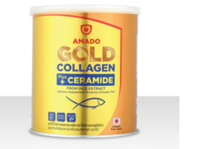 The Amado Gold Collagen Plus Ceramide is a dietary supplement designed to enhance skin health and improve overall appearance. This product contains a blend of high-quality collagen derived from fish as well as ceramides extracted from rice. The formulation aims to promote skin elasticity, hydration, and rejuvenation. Regular use may help reduce the visible signs of aging, such as wrinkles and fine lines, while also promoting a healthy glow. This product is suitable for individuals seeking to improve their skin's appearance and maintain its youthful vitality.