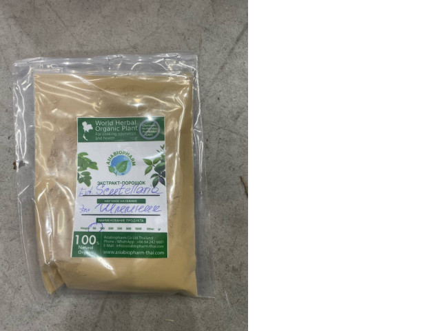 WORLD HERBAL ORGANIC PLANT Extract Scutellaria is a premium quality herbal powder derived from the Scutellaria plant. This 100g package contains finely ground plant extract, known for its numerous health benefits, including antioxidant properties and potential anti-inflammatory effects. This herbal extract can be used in cooking, cosmetics, and health applications. Its natural composition makes it suitable for various recipes and skin formulations. The powder has a light brown color with a slightly coarse texture, packaged in a resealable plastic bag for freshness and convenience. Ideal for those seeking to enhance their diet and beauty routine with organic ingredients.