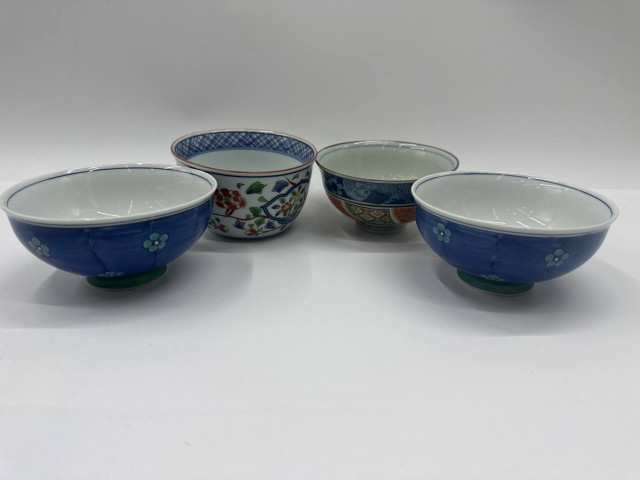 Set of 4 Glass, Japanese style glass bowl with white and blue stripes pattern