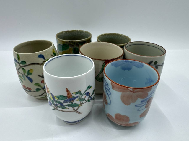 Set of 2 Antique Japanese glazed tea ceremony tea cups and tea glasses