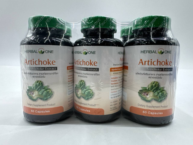The HERBALONE Artichoke Extract is a dietary supplement that comes in a pack containing six bottles, each with 60 capsules. Artichokes are known for their numerous health benefits, including supporting liver function, promoting digestive health, and assisting in weight management. These capsules are designed to provide a concentrated dose of artichoke extract, ensuring that the user receives the maximum benefits of this healthy vegetable. The product is suitable for those seeking to enhance their overall health and well-being with a natural supplement. Each bottle features a sleek black design with a green cap, and the label prominently displays the product name and details, making it easily identifiable. With its blend of natural ingredients, this supplement aims to promote better digestion and detoxification.